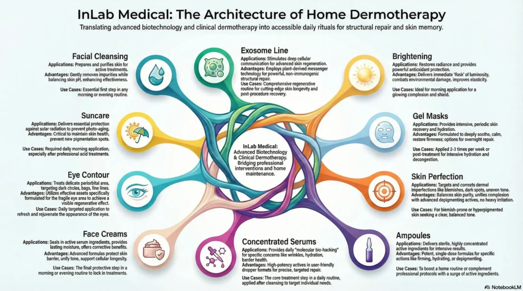 The philosophy of the InLab Medical Home Care line is built upon the concept of "Molecular Bio-Hacking" for daily use. We recognize that environmental factors and lifestyle choices can impact how your skin ages. Our formulations are designed to address these daily challenges by supporting the skin's natural resilience and maintaining a youthful appearance through consistent, easy-to-use rituals.